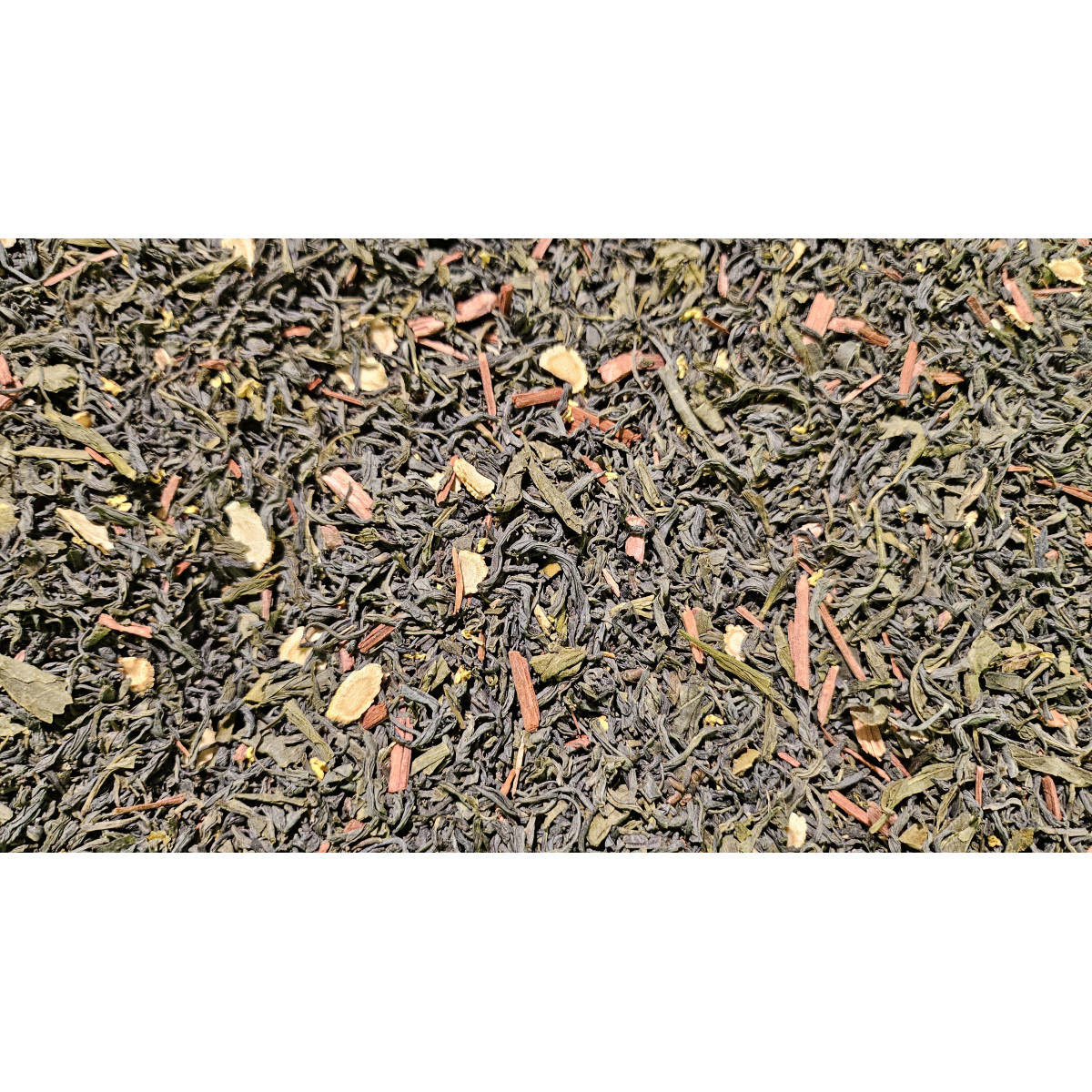 чай зелений "Афродизіак (женьшень)" - це чай китайський зелений, шматочки корня женьшеню, сандалового дерева та квіти османтусу