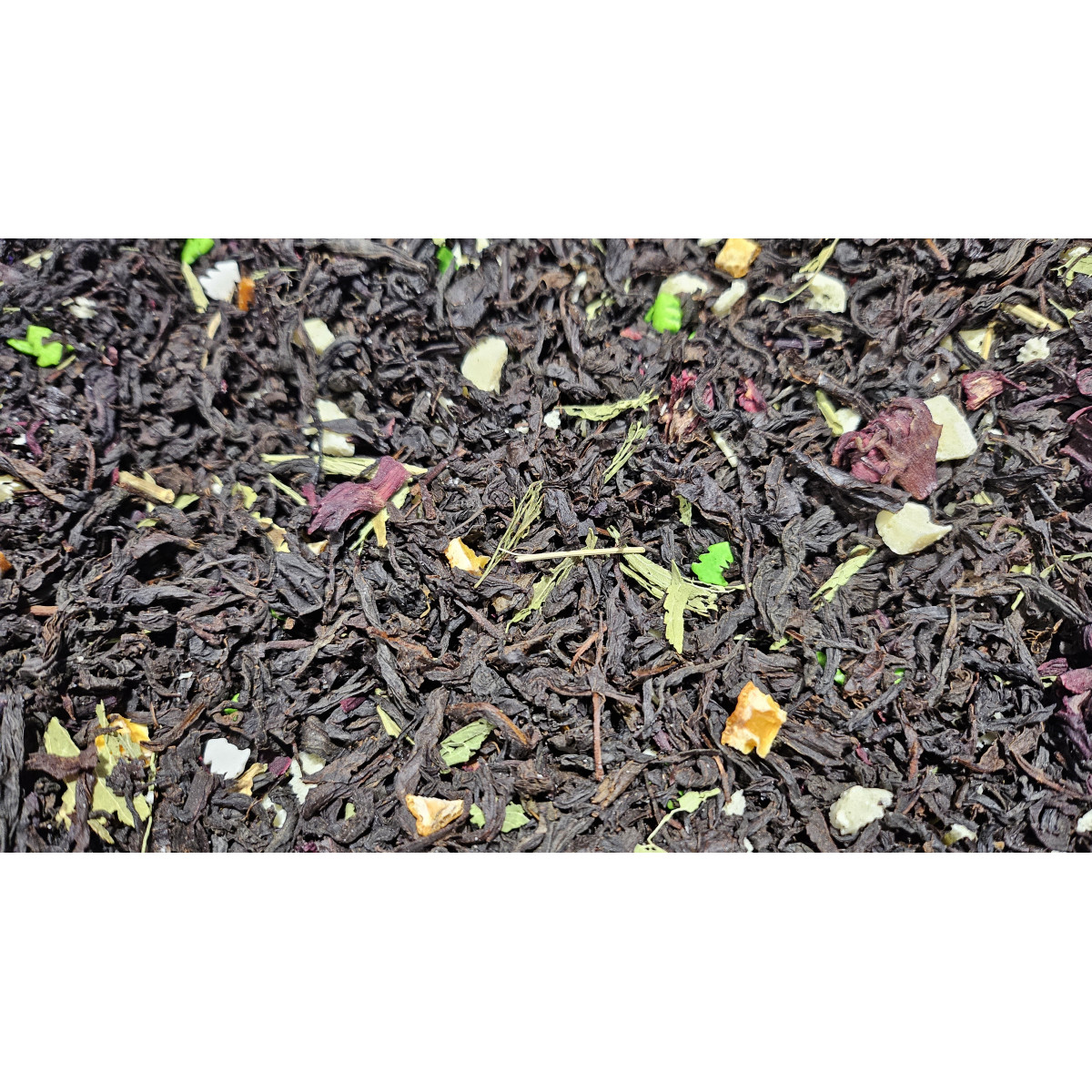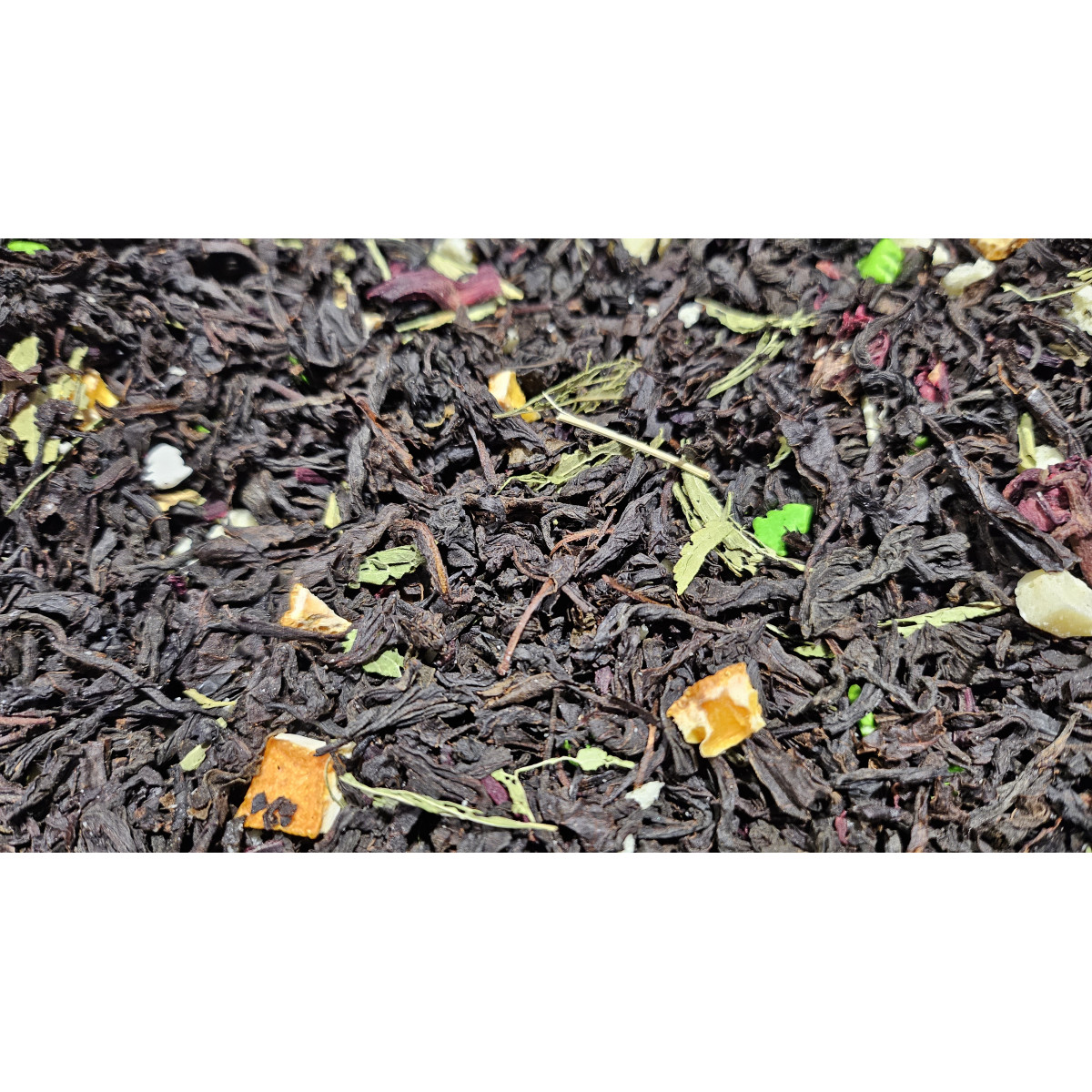 чай чорний "Білий шоколад" - це чай чорний цейлонський середньолистовий з додаванням шматочків білого шоколаду, каркаде, стевія, цедра, цукрові фігурки.