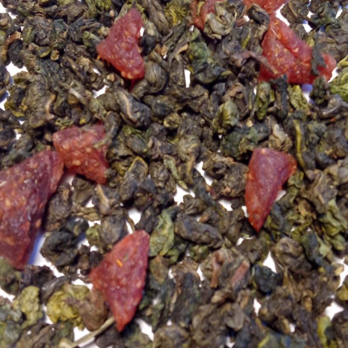 Чай "Полуничний оолонг" - це класичний китайський напівферментований чай зібраний у провінції Фудзянь з пелюстками шафрану, а також зі шматочками і ароматом полуниці.