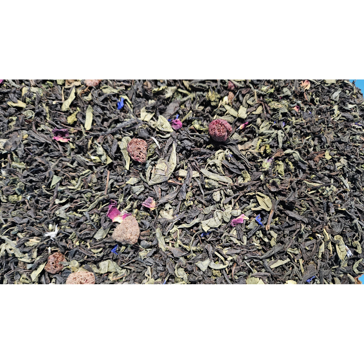 Чай "Ерл Грей ягідний" - це купаж чаїв чорного цейлонського середньолистового та зеленого китайського Високогірного з додаванням олії бергамоту, листом волоського горіха, шматочків малини та полуниці.