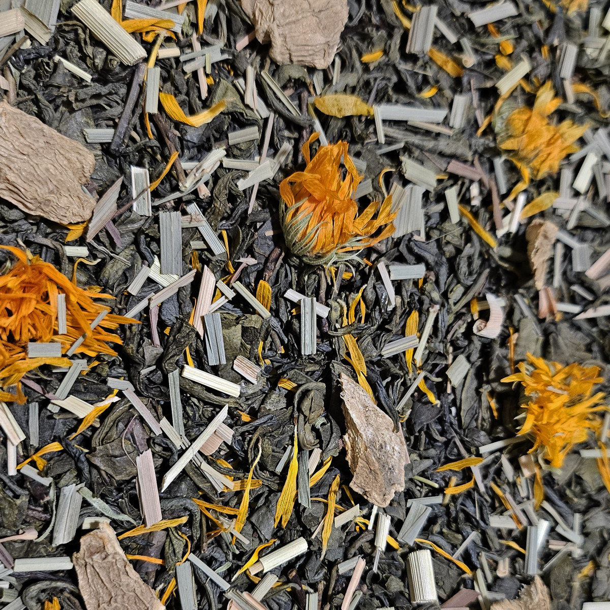"Імбірний" - це китайський зелений чай з шматочками імбиру та пелюстками календули