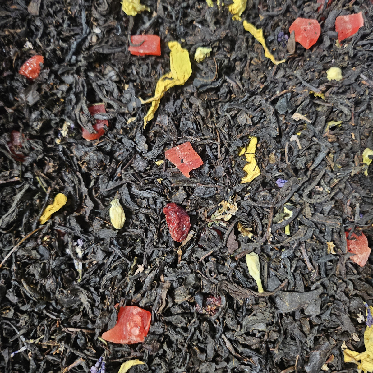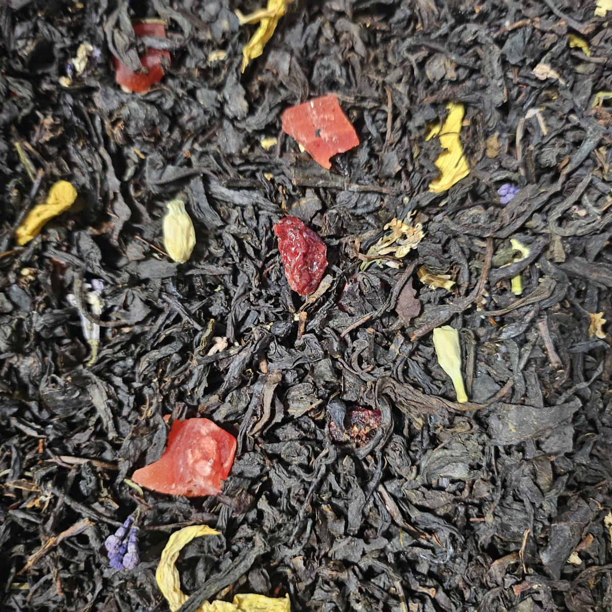 чай чорний "Прованс" - це чай чорний цейлонський середньолистовий з додаванням шматочків папаї та журавлини, квітів бузку, жасмину, соняшника