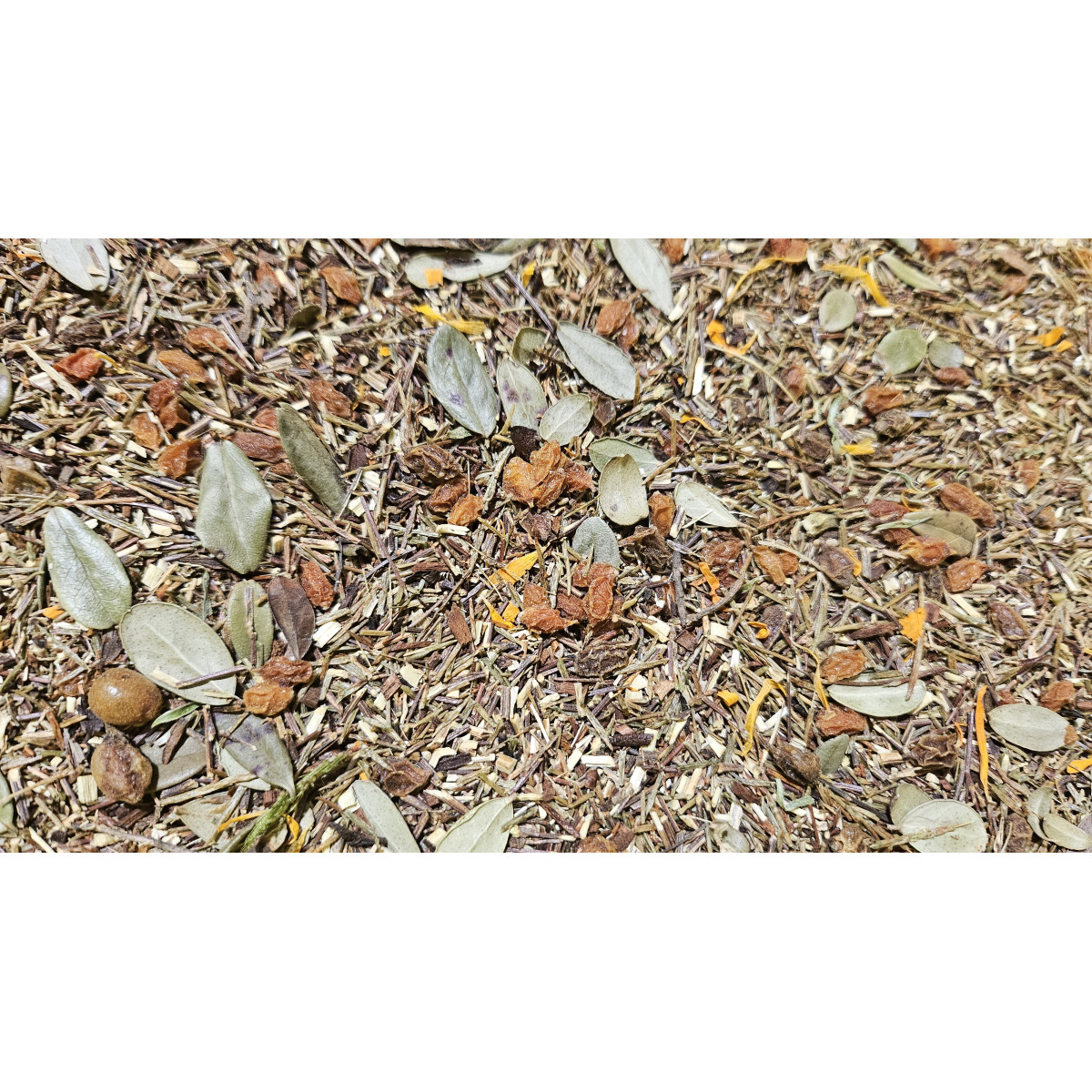 трав'яний чай "Обліпиховий" - це суміш Южноафриканських кустарників медового Ханібушу та зеленого Ройбушу з обліпиховими ягодами, листям шафрану та брусниці