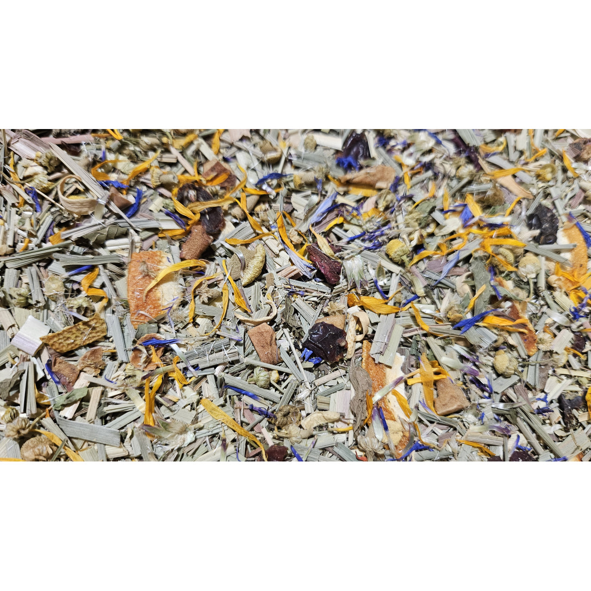 Трав'яна суміш "Ромашковий" - це натуральний трав'яний чай, до складу якого входять скоринки шипшини, цедра, ромашка, м'ята, лимонна трава, волошка, шафран.