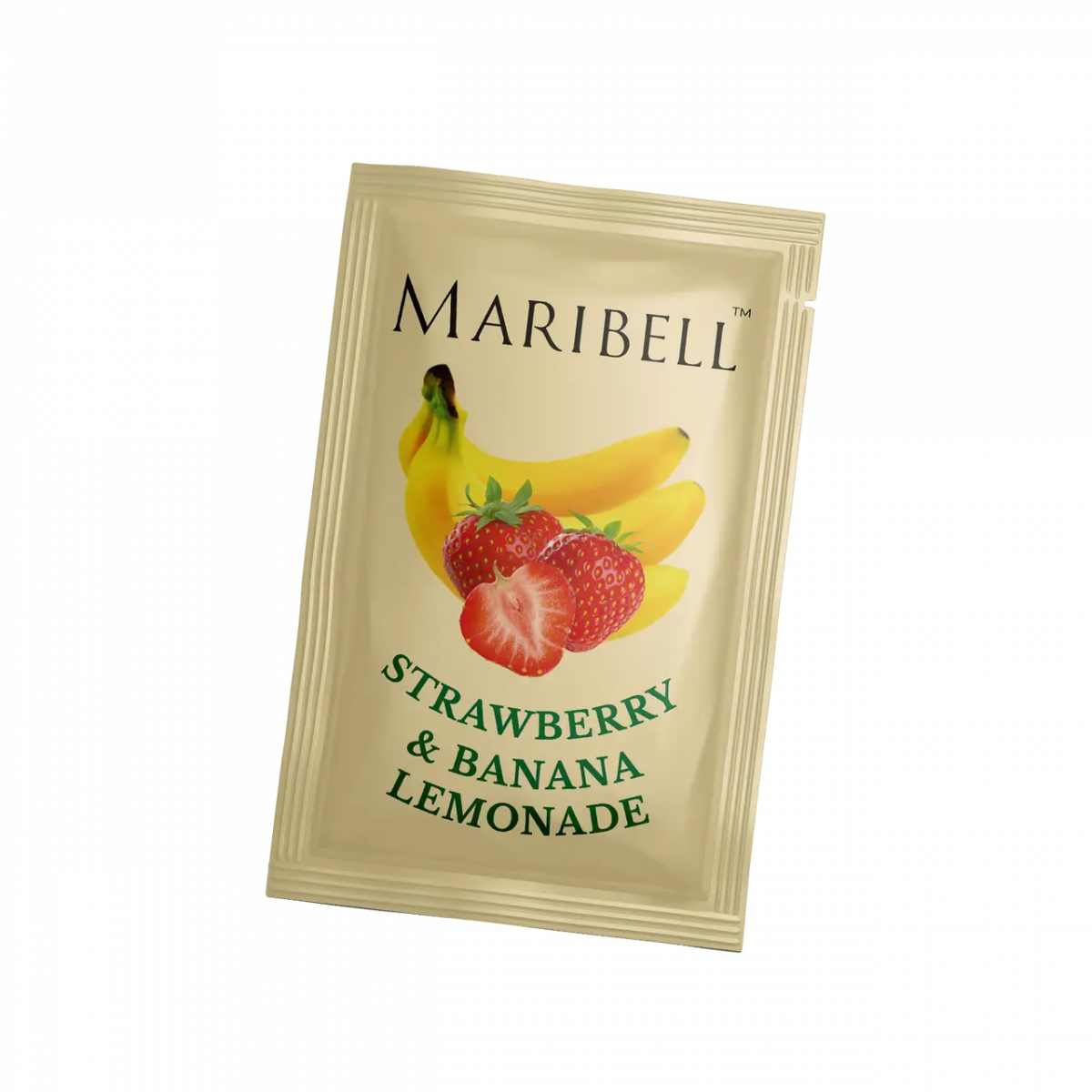 Лимонад пюре Клубника-Банан 50г Maribell. Пюре для натурального лимонаду виготовлено з натуральних ягід і фруктів. Концентрат використовується у приготуванні газованих та негазованих напоїв.