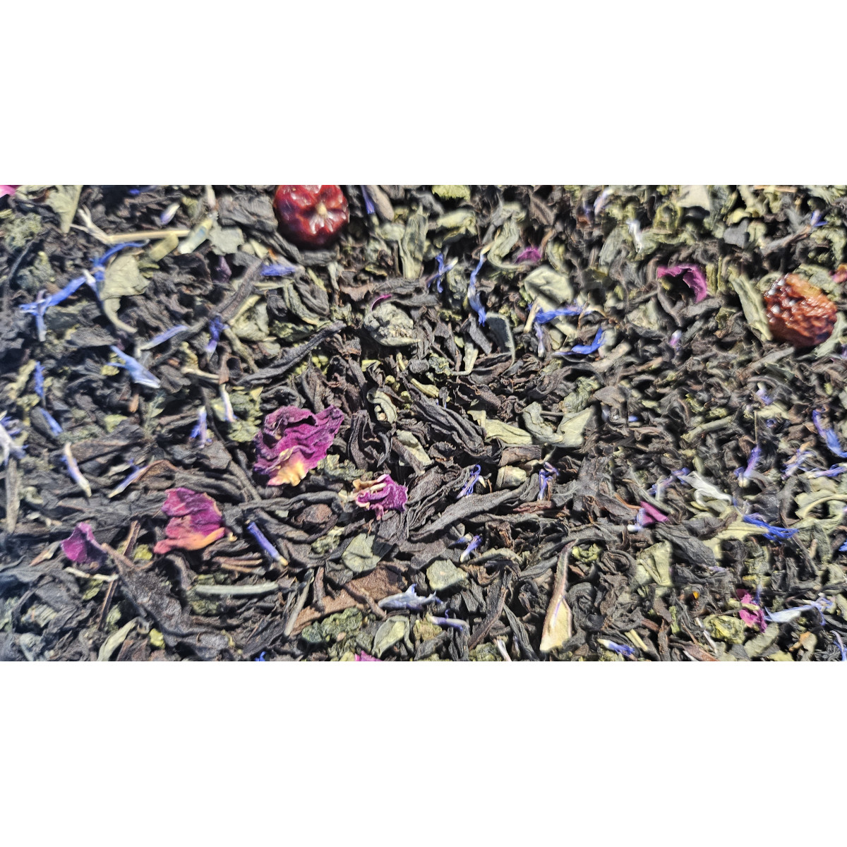Чай "Сумішка чорного та зеленого" - це купаж чорного цейлонського середньолистового та зеленого китайського чаю ганпаудерача з пелюстками чайної троянди, скоринками шипшини та ніжним ароматом