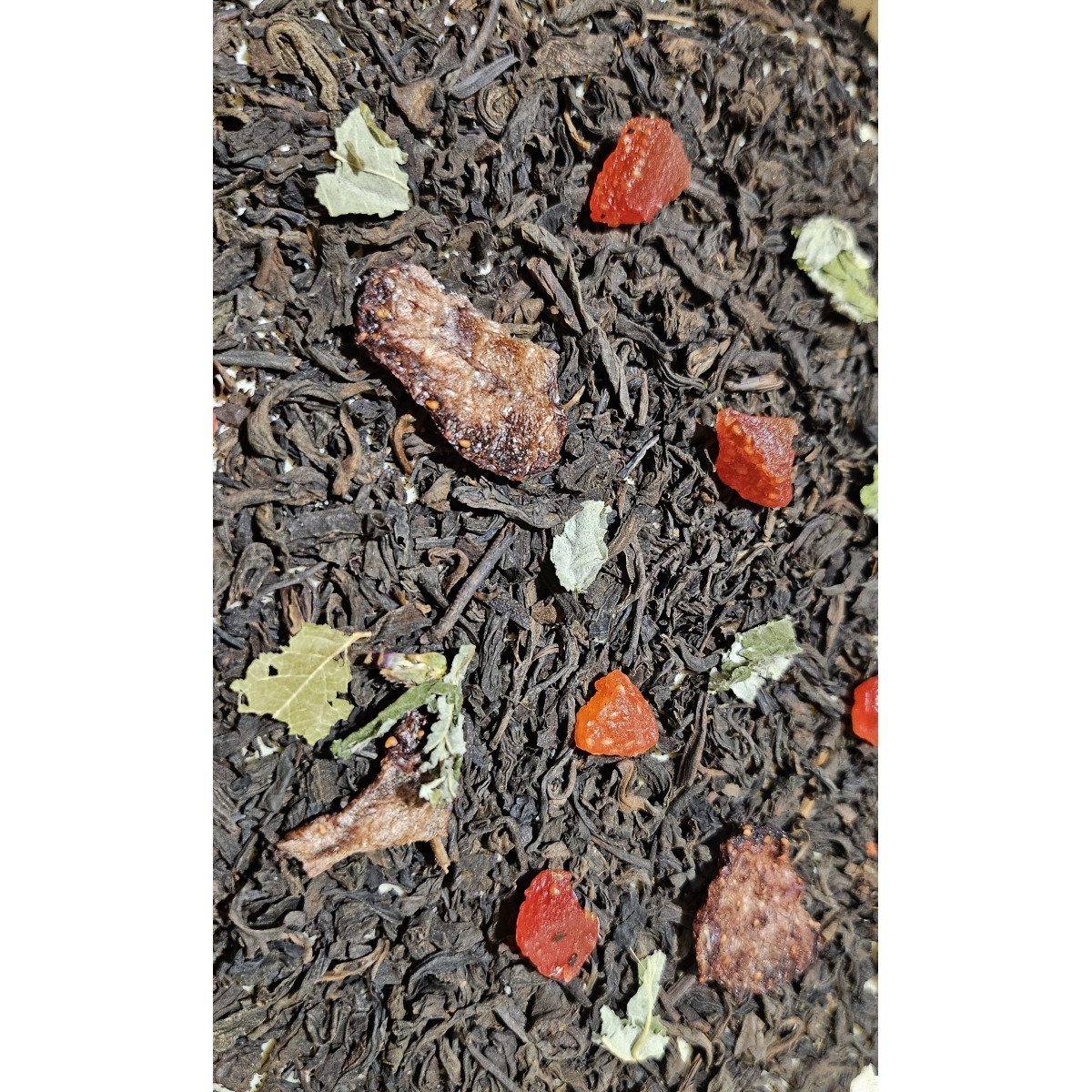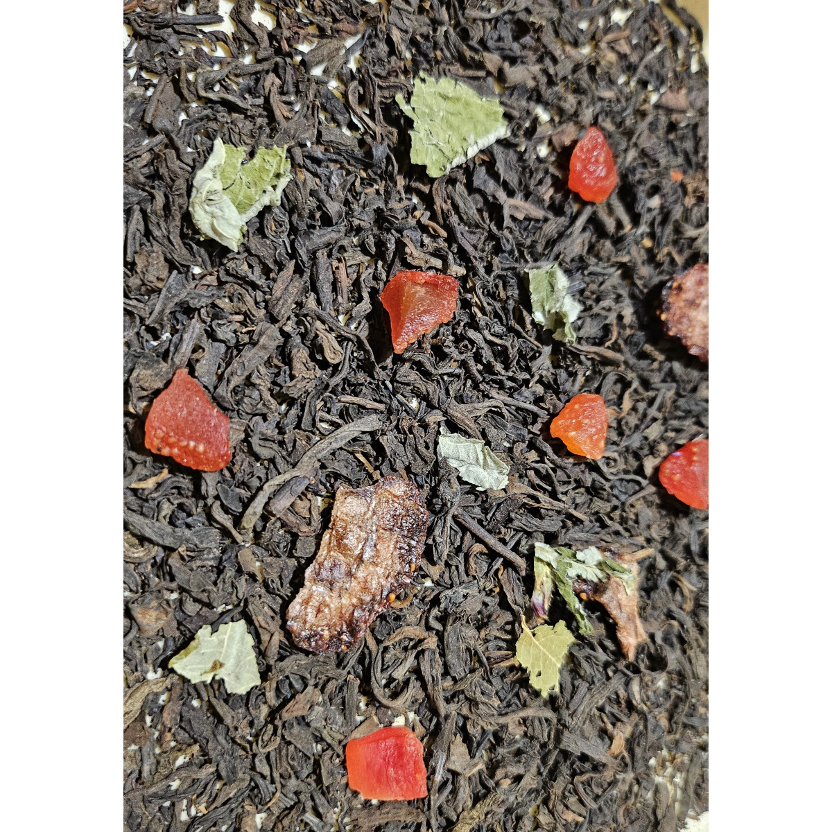 "Пуер з полуницею" - це класичний Шу пуер (постферментований) чай з натуральним присмаком і ароматом, а також усіма властивостями натурального земляного чаю з додаванням ягід полуниці.