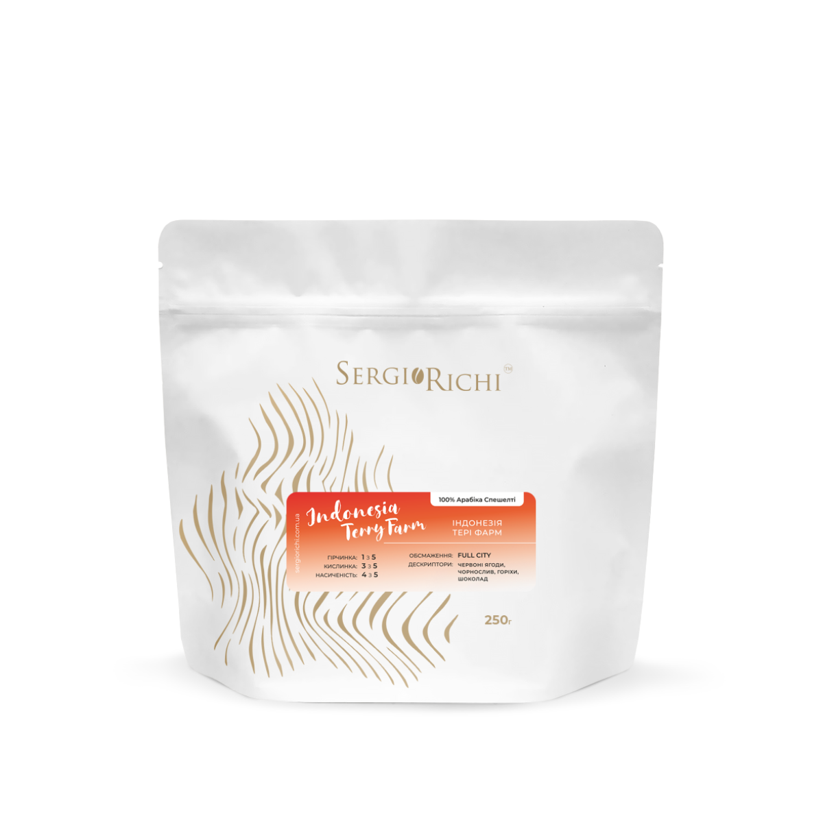 Indonesia Terry Farm — 100% арабіка спешелті з Індонезії, вирощена на приватній фермі, де особлива увага приділяється якості обробки та збереженню природного смакового профілю зерна