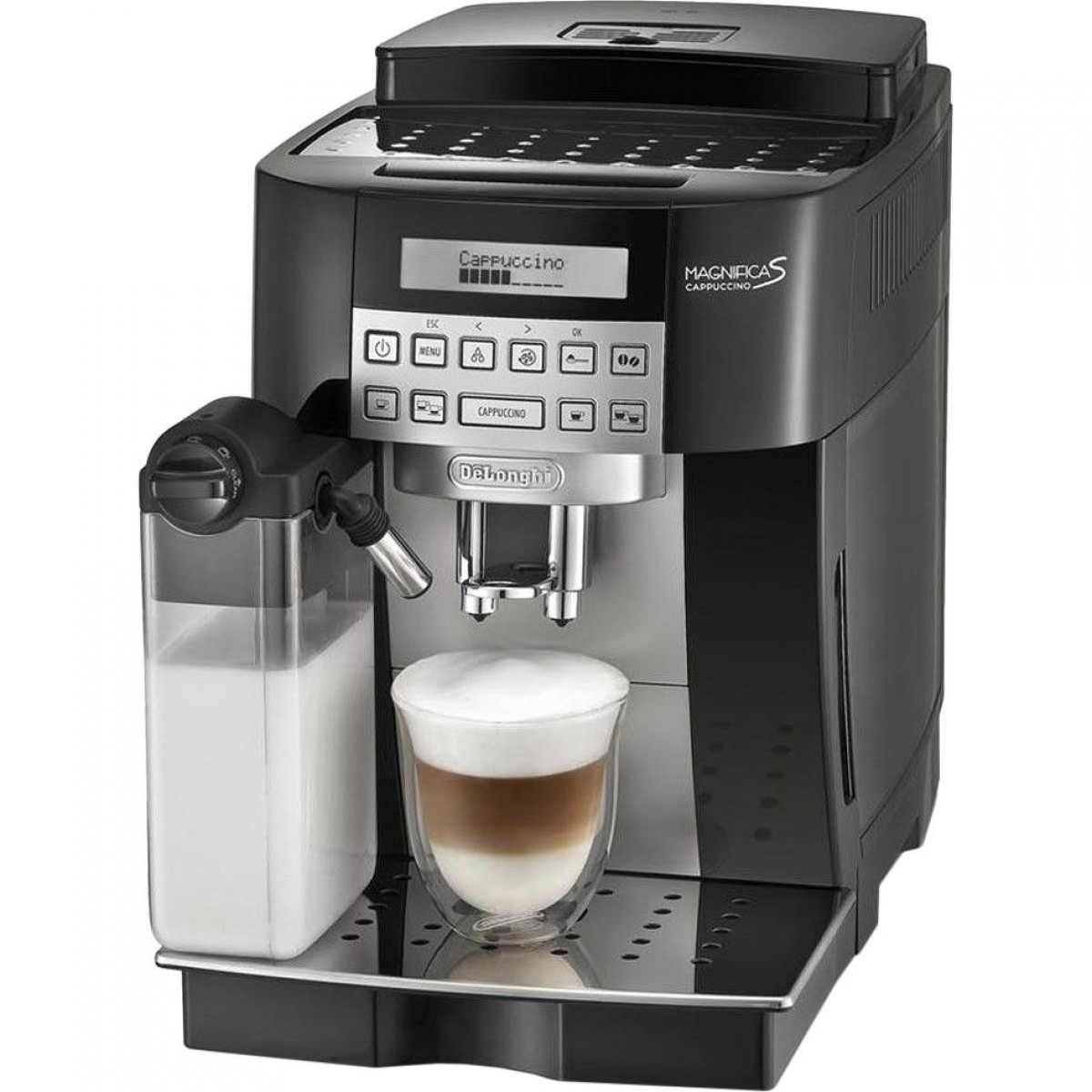 Контейнер для молока можна зняти і помістити в холодильник. Зручно та практично. Вміст вашої чашки завжди буде свіжим та смачним. Купити DeLonghi Magnifica S ECAM 22.360 B – дозволити собі особливу каву, яка назавжди змінить ваше уявлення про цей напій. Кавомашина попередньо змочує кавовий порошок, наливає напій у теплі чашки – саме такий смак мають секрети приготування напою в італійських кав'ярнях. Система для автоматичного приготування капучіно, приготування дуже смачного еспресо з пишною пінкою, можливість відрегулювати кількість води та кави для порції, щоразу бездоганний результат – ви, безсумнівно, порадієте придбанню цієї кавоварки.