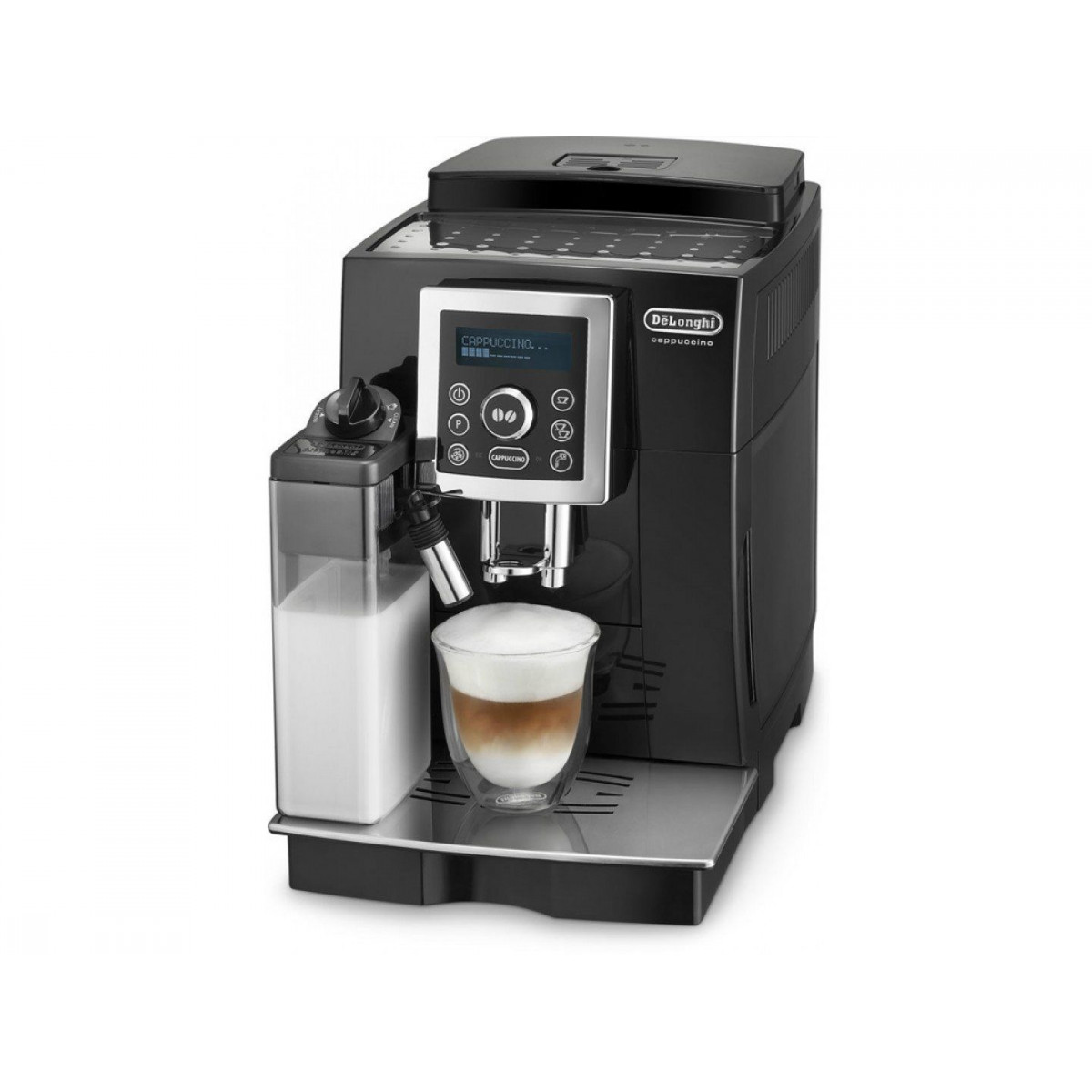 Delonghi ECAM 23.460.B - такій автоматичній каві-машині буде радуйся КОЖНИЙ любитель еспресо та Капучіно. Пристрій не займає дуже багато місця на столі, забезпечений максимально швидко і простий процес приготування улюблених напоїв, прослужити вірою і правдою довгий термін при ретельному дотриманні всіх правил експлуатації. Програмувати рецепти можна з урахуванням своїх індивідуальних переваг. Використовувати можна як мелену каву, так і зерна. За один цикл можна наповнити два кружки висота від 86 до 142 мм. Млин в Delonghi ECAM 23.460.B працює тихо, до того ж пропонує цілих 13 ступенів помелу. Ємність для води в апараті розрахована на заповнення 1,8 л рідини. Що стосується дисплея, він є дворядковим, з іконками. Кнопки управління розташовані трохи нижче, мають зрозумілі Позначення