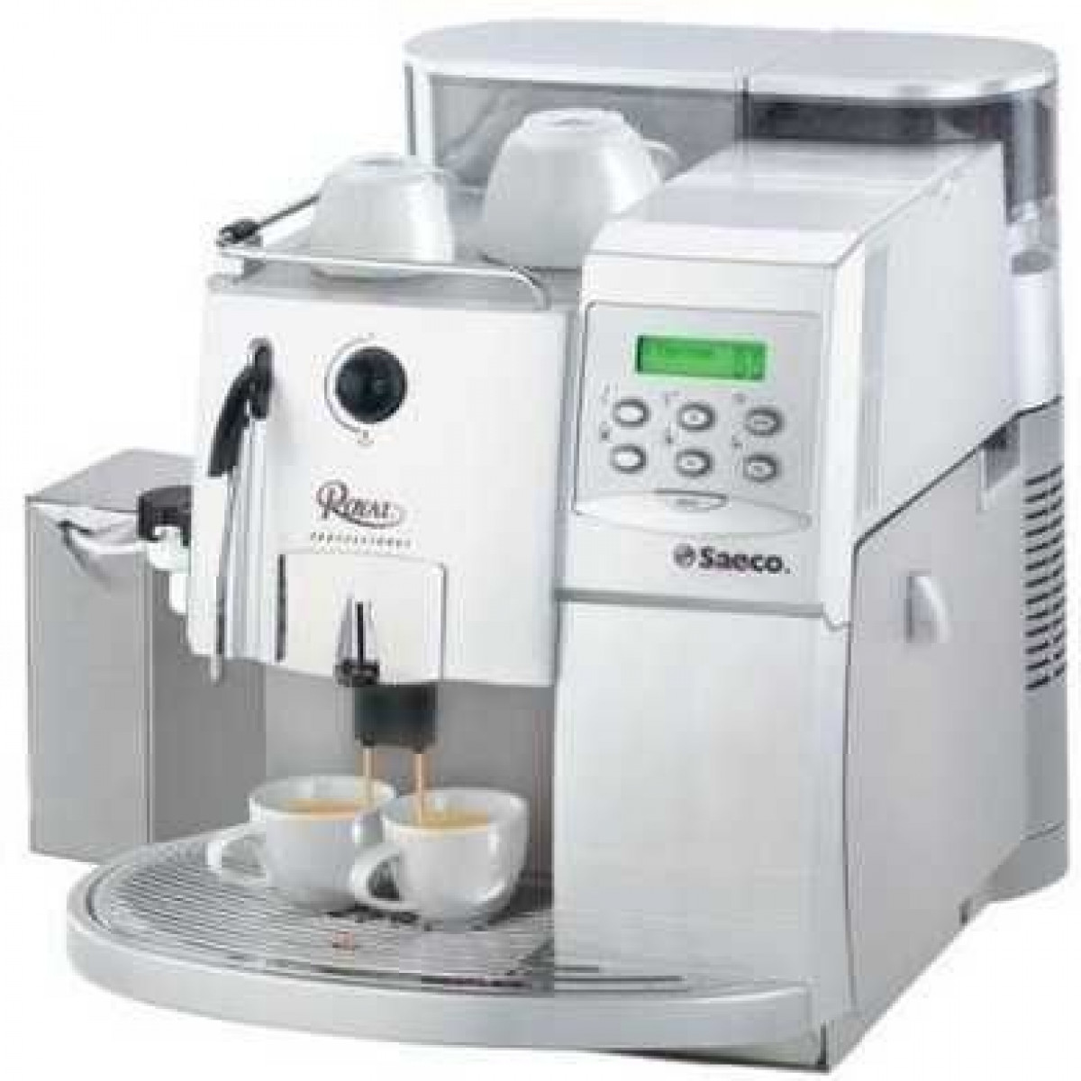 Кавові які ми продаємо проходять повну передпродажну підготовку (заміна прокладок, кілець ущільнювачів, клапанів, повна чистка від накипу і т. Д.) І в підсумку ми продаємо Вам кавомашини які працюють як нові з магазинів, а то і краще. Габарити (ширина х висота х глибина): 390 x 395 x 455 мм Маса нетто (г): 15 кг Виробник: Saeco International Group (Італія) Потужність (Вт) 1600 Вт Ємність контейнера для зерен (г): 300 г Напруга електромережі: 220 вольт Ємність бака для води: 2,4 л Тиск екстракції: 9 бар Форма жорен: Плоска Матеріал жорен: Сталь Ємність контейнера для використаної кави: 30 порцій Огляд Saeco Royal Cappuccino RI9914 / 01 Кофемашина-суперавтомат Saeco Royal Cappuccino (Саеко Роял капучино) - кавоварка з продуктивністю до 120 порцій кави в годину, найкраще підходить для установки в офісах, кафе, барах, ресторанах, готелях. За рахунок двох бойлерів, кавоварка може одночасно готувати еспресо і збивати молоко, що істотно скорочує час приготування напоїв. За допомогою цього кавового агрегату ви зможете готувати спектр кавових напоїв: еспресо, ристретто, американо, капучино, латте. Saeco Royal Cappuccino забезпечена місткими ємностями: бункерамім для кавових зерен і води на 300 г і 2,4 л відповідно, контейнером для кавових відходів на 30 порцій, що дозволяє обслуговувати її рідше. Кавова машина має поворотний підставу для зручності експлуатації. Це полегшує доступ до всіх нужденних в обслуговуванні відсіках. На верхній панелі знаходиться платформа з активним підігрівом чашок, на яку можна складати кавовий посуд. Підставка огороджена бортиком щоб уникнути падіння посуду. Диспенсер легко регулюється по висоті, дозволяючи використовувати для приготування чашки і стакани висотою до 140 мм. Також диспенсер має два отвори для подачі напою, що дозволяє готувати дві чашки кави одночасно. Saeco Royal Cappuccino має шестікнопочную панель управління і дисплей, на який кавоварка виводить різну службову інформацію, повідомляє про потреби в очищенні, відображає прогрес приготування напоїв, рекомендації і т.п. Ви можете програмувати різноманітні настройки, такі як кількість води на порцію, бажану температуру напою, встановити програму попереднього помелу або попереднього змочування кави. Лічильник чашок дозволяє вести облік кількості споживаних напоїв. Вбудований професійний капучинатор в поєднанні з другим бойлером, яким оснащена машина, роблять приготування капучино з повітряної шапкою молочної піни легким і швидким. Завдяки другому бойлеру, кавоварка може миттєво подати пар для збивання молока, що дозволяє одночасно готувати еспресо і збите молоко. Ці технології, поряд з незаперечною надійністю, продуктивністю, і італійським якістю виводить Saeco Royal Cappuccino в лідери продажів по всьому світу і робить машину максимально популярною не тільки для офісів, але і закладів сегменту HoReCa (готелі, ресторани, кафе). Кофемолка з низькооборотної сталевими жорнами великого діаметра Дозування меленої кави на порцію 6-9 г Програмування обсягу порції кави Автоматична промивка диспенсера кави Налаштування на жорсткість води Регулювання температури приготування кави Система обліку приготованої кави Автоматичний контроль за відсутністю води, кавових зерен, наполнененіем контейнера відходів, несправностями і помилками в роботі Сигналізація про необхідність очищення від накипу Цифровий годинник Таймер переходу в режим енергоз